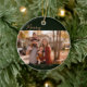 Fira julhelgen med den här eleganten-familjens fotojulprydnad. Den här designen har en modern mörk grönt bakgrund med snyggt-skriptcalligrafi som läser God jul och lyfter fram ditt favoritfamiljefoto i mitten. Personligen med din familj namn och år vid grund är det perfektens sätt att sprida kärlek, glädje och festligt hälsning till familj och vänner. Anpassa meddelandet på baksidan och lägg till familj först namn. Gör det till tradition att varje år ha en ny fotofamiljsdekoration.