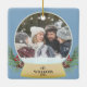 Söt snö med snö och stjärnor och en guld-bas håller ditt speciella foto! Lägg till ditt namn, namn eller familj namn och året. En sådan magisk prydnad. Se samordna saker i vår butik, Enchanted Finch.