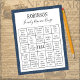 Njut av att spela den här roligten, bingo-spel vid nästa familjeåterförening. Den har alla nya fyrkantiga föremål! Hitta matcherna från din egen familj för att få mycket roligt. Blå fuktig bakgrund.