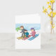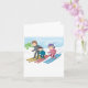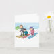 En familj som går ner i en sluttning. Den här designen ser ut att vara effektiv på det här hälsningskortet