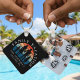 Retro sol-familjens nyckelkedja för semester med familjeföretag i händer. Anpassa den med din händelseinformation och ett bild på baksidan.
