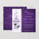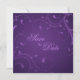 Den här metalliska champagnen, som är fyrkantig för att rädda bröllop-annonserna, har en fantasifull fågelburk med snurrar och hjärta, och två söta fåglar. Ett glansigt lila band separerar en äggplanta för lila, som innehåller datumtexten i champagne och lätt lila. Ord, i alternerande skript och klassiskt serif typsnitt, är fullständigt anpassade.