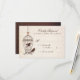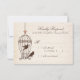 Svarskorten från bröllop har en fantasifull fågelburk med snurrar och ett rosa hjärta, och två söta fåglar i chokladbrun, hängande mot en elfenbensbakgrund, texturerad papper bakgrund med avklädd handstil. Ordalydelsen, i alternerande manus och klassiskt serif typsnitt, är fullständigt anpassade.