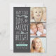 En söt wish för en glad och ljus jul överförs med denna moderna design som presenterar ett älskvärt räcker bokstäver och som markerar av illustrerade rullor i rodnad- och aquauppsättning mot en grå bakgrund med utrymme för tre foto av din familj. En charmig och skämtsam samtida hälsning som ska överföras till familjen och vänner denna julhelg.