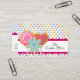 ©Socialitedesigner 2011. Vår nyckfulla design för visitkorten för kakapopbagerit har färgrika tre, formade kakor, och ett färgrikt polka-pricker bakgrund. En perfekt visitkort för en bageriaffär eller händelsecateringaffär liksom efterrättbord. Personifiera denna visitkort för kakapopbagerit med din information. Behöv HJÄLP med att skräddarsy? Please tvekar inte att kontakta mig med dina krav.