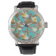 illustration med vattenfärgad stjärnfisk och plumeria-blommor på turkos bakgrund | © and ® Bigstock® - Med förbehåll för alla Höger.