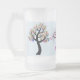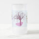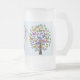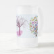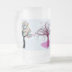 Tre fanciful träd: en med färgrika fjärilar, en med ljusa mång- färgadlöv och centrera en med precis några burgundy färgade hjärtor, alla på ett frostigt blåttbakgrundskuvert en mycket trevlig stor frostad mugg.
