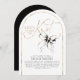This “She’s Tying the Knot” bridal shower invitation captures romance with a playful twist. A flowing gold calligraphy headline glows like fine jewelry against a crisp white backdrop, instantly drawing the eye and setting a celebratory tone. Perched delicately above the lettering, a hand-painted black watercolor bow feels like the finishing ribbon on a beautifully wrapped gift — charming, unexpected, and undeniably chic. The arch-shaped cut adds an extra layer of distinction, giving the invitation a sculptural, modern silhouette that feels as special as the moment it announces.