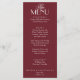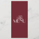 A fancy and retro luxury bright wedding dinner menu. Which features chic template design of old money vintage burgundy background and white typography and fancy menu. Perfect and matching with the whole suite.