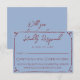 A simple and elegant calligraphy wedding RSVP card. That has a blue background and deep red burgundy hand drawn frame and info.