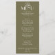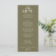 A fancy and retro luxury boho bright wedding dinner menu. Which features chic old money template design of old money vintage olive green old money background and white typography and fancy menu. Perfect and matching with the whole suite.