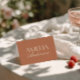 Classy and fancy terracotta wedding place card designed for a clean and elegant old money reception table setting. This folded escort card features a handwritten script wedding name paired with contemporary typography. The dusty terracotta and beige old money cream wedding decor adds a fresh, stylish touch to your wedding. Perfect as a custom guest name card for a chic and simple wedding celebration. Use this elegant folded place card to elevate your modern reception table decor. A sophisticated contemporary wedding table card that complements any minimalist wedding theme.