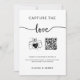 Fånga fotnotssignalen för QR-koden Bröllop, Inbjudan Vår "Capture the Kärlek"-skylt visar en vackert utformad titel och ett hjärtligt budskap från bruden och brudgummen. Det som gör det verkligt speciellt är anpassadet QR-kod, som gör det möjligt för gästerna att utan problem sina foton med dig på den plattform du föredrar, oavsett om det är Google Photos eller något annat alternativ du väljer.