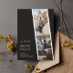 Vi presenterar vår fängslande "Capture Kärlek" Bröllop spara datum Card, en fantastisk blandning av foto nostalgia och contemporary estetik. Den här unika designen sammanfattar själva kärnan i din resa och inbjuder nära och kära att markera sina kalendrar för din speciella dag. Bakgrunden utstrålar en luft av vintage allure, som påminner om de klassiska fotobågarna som håller omhuldade minnen. Moderna svarta och vita tonar utgör grunden för denna palett i trendiget färg och framkallar känslor av romantik och tidlöshet. De här nyheterna samverkar på ett bra sätt och skapar en harmonisk bakgrund som framhäver kortets huvudsakliga fokus. I förgrunden tar en konstnärlig arrangemang av dina favoritbilder på förlovningen en mittpunkt. Varje ram har ett omhuldat ögonblick fryst i tid och bjuder in gäster till på er glädjefyllda resa. Teckenparet för texten är ett uttryck för modern elegans. De viktigaste detaljerna, t.ex. parets namn och bröllop-datumet, skrivs på ett vackert sätt i ett sofistikerat sif-teckensnitt. Detta kompletterar på ett motsägelsefullt sätt stödtexten, som använder ett elegant-kalligrafteckensnitt. Kombinationen av inte bara spegel och dualiteten i din kärlek-historia, utan även en liten förfining av den övergripande utformningen.