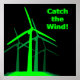 Fånga Vinden! - Svart poster med en grönt med vindrutetänkt text och en vind turbingrafik.