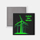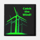 Fånga Vinden! - med en bild av en grupp moderna turbiner av vind i levande grönt mot svart bakgrund.