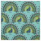 Vacker blå och grön påfågelstyg per yard. Mönstret är gjort av söta påfågelillustrationer tätt packade för att skapa ett livfullt tryck. Färgerna är livliga men ändå lugnande med svarta konturer som ger stadga och kontrast till de ljusare tonerna. Vacker tryckt tyg för dina naturinspirerade sy- och hantverksprojekt.