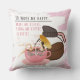 Det här fåniget dekorativ kudde är bara till för älskare med hög kaffehalt! En flicka sitta i ett kaffe mugg med ord: "För att göra mig lycklig: gör mig kaffe, ta med mig kaffe, var kaffe ..." Hon klämmer under ett paraply i rosa mugg och håller ett rosa kaffe mugg, med en kaffekarafé bakom henne.