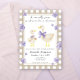 "En ny fånig är på väg att vara på fri fot." Firar med den här söta gosse-teman, babyduschen party! Vattenfärgad liten baby-gås och mamma med lila båge och blommor daisy. Brun bur.