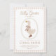 Cute beige gingham-babyduschinbjudan med en gås i stövlar.