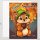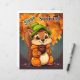 En underbar bild för ett barns rum. En söt ekorre som håller en akorn sitta i skogen omgiven av Höst löv.