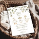 Fånig och perfekt sött, den här första födelsedagsinbjudan innehåller tre gäss i vintagar och bågar under en kanopi med vattenfärgade blommigtar. Med mjuka beige toner, handmålade detaljer och en storybodscharm är det en idealisk plocka för ett neutralt, naturinspirerat firande - oavsett om du planerar inomhus eller under träd.