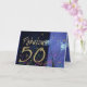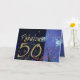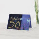 Fungerande 50 i roligt med mycket av blommor av färg ... rosa, blått, lila, gult och grönt mot mörk blått bakgrund. Perfekt party dekor/kort för ditt 50:e Födelsedagsfest inbjudan och dina dekorationer.