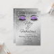 Fira femtioårsdagen med denna eleganta och glamourösa svarta och lila födelsedagsinbjudan. Prydd med lila glitterögon och diamantgnistrande detaljer. Personifiera den med ett namn. Skapad av Simply Farmhouse Press på Zazzle.