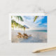 Det här fotot har strandstolar, ett paraply och handflatan på stranden.