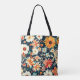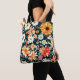 Den här tote-väskan har en andningsformad design av ömtåliga vita, blå och lush röd orange blommor som ställs in mot en djup mörk blått bakgrund. Blommorna med röd orange kontrerar vackert med de mjuka vita och blå petalerna, skapar elegant och öga. Den mörk blått bakgrunden till riken förbättrar blommönstret genom att lägga till djup och sofistikering i det här snyggten. Den här väskan är tillverkad av tålig väv av hög kvalitet med robust handtag och är en perfekt för att transportera vardagliga essentiella material i stil. Med sitt djärva färg och naturinspirerad charm ger det en smula elegans och funktionalitet till vilken utrustning som helst.