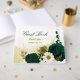 Vackra smaragdblommor i elfenbensvit grönt och blommor i guld med guld löv botaniska gäster bok. Uppgifterna om guld glitter simuleras. OM DU VILL HA MER MATCHING PRODUCT klickar du på samlingen ovan eller kontaktar mig.