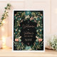 Välkomna era gäster med stil med detta eleganta baby shower-skylt med en fantastisk blommig design. Den mörkgröna bakgrunden, i kombination med frodig grönska och mjuka rosa blommor, skapar en charmig atmosfär för en naturinspirerad eller boho-inspirerad händelse. Denna handillustrerade välkomstskylt lägger till en vacker och personlig touch till din fest, och sätter den perfekta tonen för en minnesvärd baby shower.