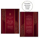 Fantastisk mörkröd och guldröd utsmyckad design romersk-katolskt bröllopsbönskort. Ett elegant sätt att ge en souvenir till dina bröllopsgäster och en from skatt för dig att behålla från din bröllopsdag. Alla texter och teckensnitt kan anpassas. Tveka inte att kontakta oss om du har några frågor. Tack!