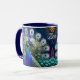 Mugg har en fantastisk fredsutformning i underbara teal, royal blått och guld färg. Romantisk motiv och elegant. Vacker och personlig gåva till vilken tillfälle som helst. Min idé, skapat med AI. Designad av AIbyMarion