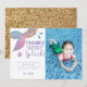 Trollbindande och fantasifull barn under havet tema födelsedag tack mallkort med en sjöjungfru stjärt i rosa, lila och turkos med falska guld glitter fjäll. Texten säger "tack för att du gjorde min fest så lyckad". Formuleringen nedan säger "tack för att du firade med mig". Du kan lägga till ditt barns bild bredvid meddelandet. Anpassa produkten genom att lägga till ditt barns namn längst ner.