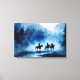 I en mesmerierande monokromatisk blå, kör infödda amerikaner på ett skickligt sätt majestätiska hästar genom en drömmande skog. Eterscenen är förtäckt i en mild dimma och tillför en episk och mystisk kvalitet till denna fängslande vattenfärgsmålning.
