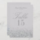 Fantastiska Silver Glitter Bröllopsbord Nummerkort. Glamourösa, glitter med gnistrande silver, detta bordskort koordinerar med vår Glitter Bröllop och Bridal Shower-dekoration. För mer anpassning, använd "anpassa"-verktyget på zazzle. Ytterligare färgalternativ finns i vår butik på Zazzle på MetroEvents. Designad av Metro-Event.com
