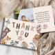 Detta vackra akvarell tackkort har en fantasifull skogsscen, prydd med söta illustrationer av skogsdjur. Med redigerbart meddelande och fotomall för att göra denna unika mall personlig.