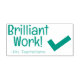 Den här inspirerande gummidesignen i frimärke innehåller det motiverade budskapet "Briljantverk!" och en anpassningsbar lärare i namn. Den innehåller också en dekorativ bock. Lärare, lärare, instruktörer eller lärare skulle kunna använda det när de graderar student för att erkänna att ett student har gjort ett enastående arbete.