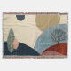 Ett abstrakt av att rulla texturerat backe med träd och växter i fetstilt färg av rött, orange, beige, grönt och tan.
