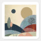 Ett abstrakt av att rulla texturerat backe med träd och växter i fetstilt färg av rött, orange, beige, grönt och tan.