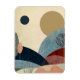 Ett abstrakt av att rulla texturerat backe med träd och växter i fetstilt färg av rött, orange, beige, grönt och tan.
