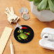 I designen visas den digitala målningen av en söt grönt fantasi-fågel med röda fjädrar i svart bakgrund. Du kan enkelt ändra bakgrunden i färg genom att klicka på "anpassa" bakgrund.
