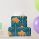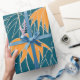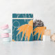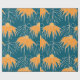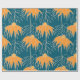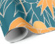 Fantasy blommigt hand plockade sömlös mönster. Orange blommor på blå bakgrund.