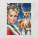 Fantasy blond-kvinna och hjort-jul vykort