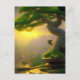 Vackra vykort har en digital fantasi-scen med ett stort Bonsai träd, mystiskt lush-landskap omgivet av en liten ström.