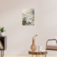 Denna stora vattenfärgsgrafik presenter är en strålande fantasi som ligger intill längs de branta gökarna i ett kustnära berg med en tätning. Slottskomplexet vind uppåt med nivåindelade slager, slender torn och stenterrasser byggt direkt i de hårda klipporna. Varmljuset tvättar över hela scenen, kastar gyllene högdagrar över de gamla stenmurarna och lyser mjukt upp mistdalen nedanför. I förgrunden seglar en liten frakt mot den förstärkta hamnen, medan snö-skyddshöljet stiga upp dramatiskt i avstånd under en blek lavender himmel. Fintvätt blandas med genomskinliga tvättar av beige, skifferblått, elfenben och brons, vilket fångar både kraften och isoleringen av detta fantastiska kungadöme. Sammansättningen framkallar den episka fantasivärldens anda, som påminner om höga bergsregioner eller bortglömda fästen från myt och legend. Perfekt för älskare av fantasykonst, medeltida arkitektur och atmosfärisk byggnad.
