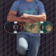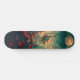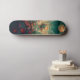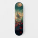 Fantasy cosmc art skateboard. Ett exempel på ett visstiskt steampunk stil maskin med flytande av ögon och tentakler, med ett överdimensionerat mynt på baksidan av surrealistiska blommor i stil i med detaljerad teckendesign, färglös fantasirealism, drömliknande illustrationer, surrealistiskt, stollig. Bakgrunden är ett annat världslandskap med flytande öar och eteriska varelser