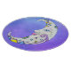 Den här glasskivan har ett fantastiskt vitt halvmånsfärande måne med ansikte och färgade cirklar och trianglar i blått och gult och en lila rulla som fuskar mot lila himlar med små vita stjärnor.