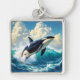 Fantasy Cute Dolphin Sea Clouds Fyrkantig Silverfärgad Nyckelring